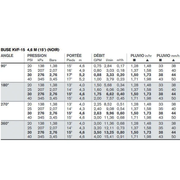 | Conditionnement | 1 tuyère d’arrosage enterré Femelle 15/21, livrée avec 1 buse réglable KVF-15 |